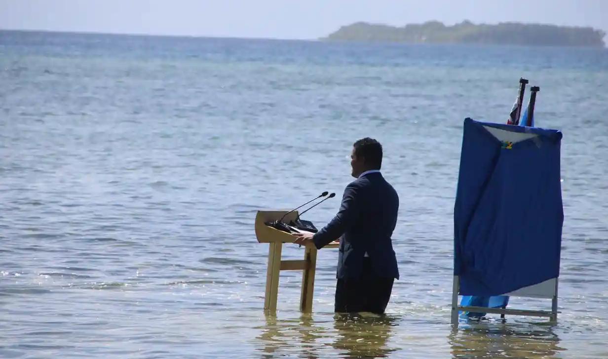 Při telekonferenci stál u řečnického pultíku po kolena v mořské vodě s nohavicemi kalhot vytaženými nad kolena. Fotografie ministra zahraničí státu Tuvalu, stojícího po kolena ve vodě, obletěla celý svět jako důkaz důležitosti boje proti klimatickým změnám a stoupající hladině světových moří.